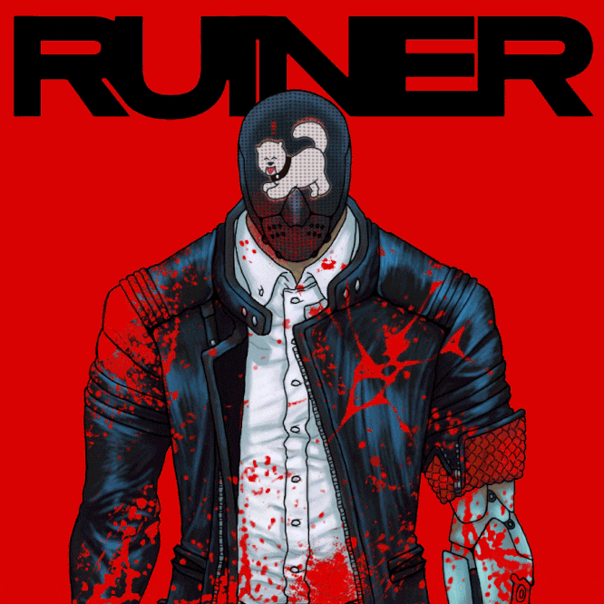 -send meat, metal, gear, chains, weapon, big dog, red and black stims